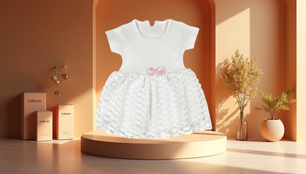 Kız Bebek Kısa Kol Elbise Beyaz