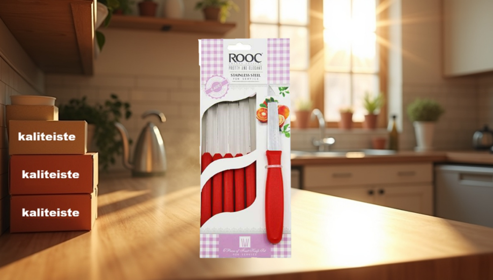 Meyve Bıçağı 6'lı Lazerli Kesim Bıçak Seti KIRMIZI