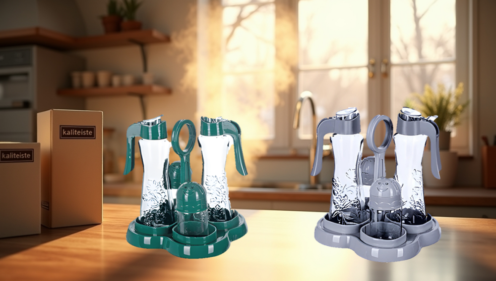 Yağlık ve Baharatlık Seti, mutfakta yağlar ve baharatları saklamak için kullanılan pratik bir set olarak öne çıkar. Şık tasarımı ve kullanışlı boyutlarıyla mutfağınıza şıklık katar ve tezgah düzeninizi sağlar. Farklı bölmeleri sayesinde malzemeleri düzenli bir şekilde saklayabilir ve kolayca erişebilirsiniz.